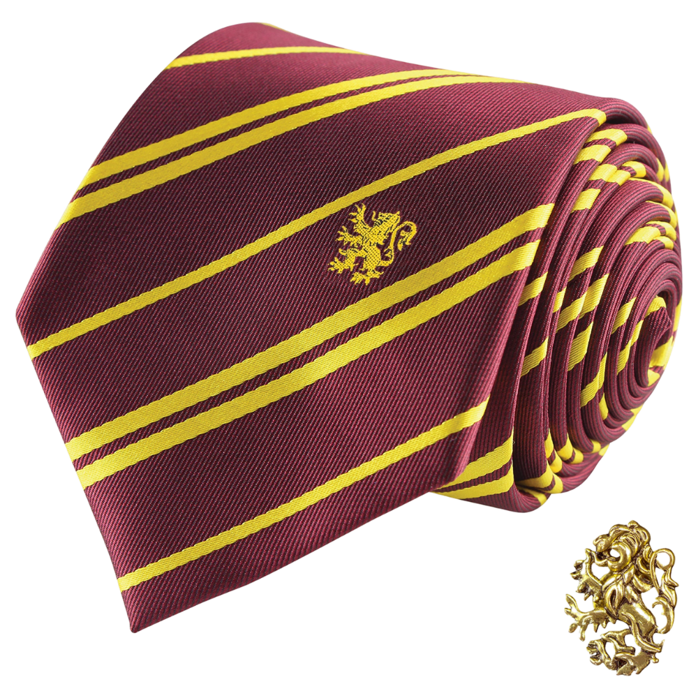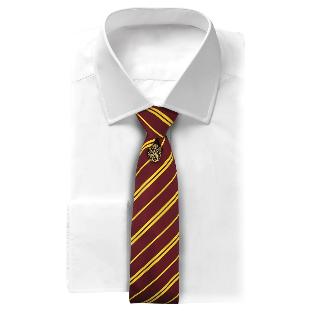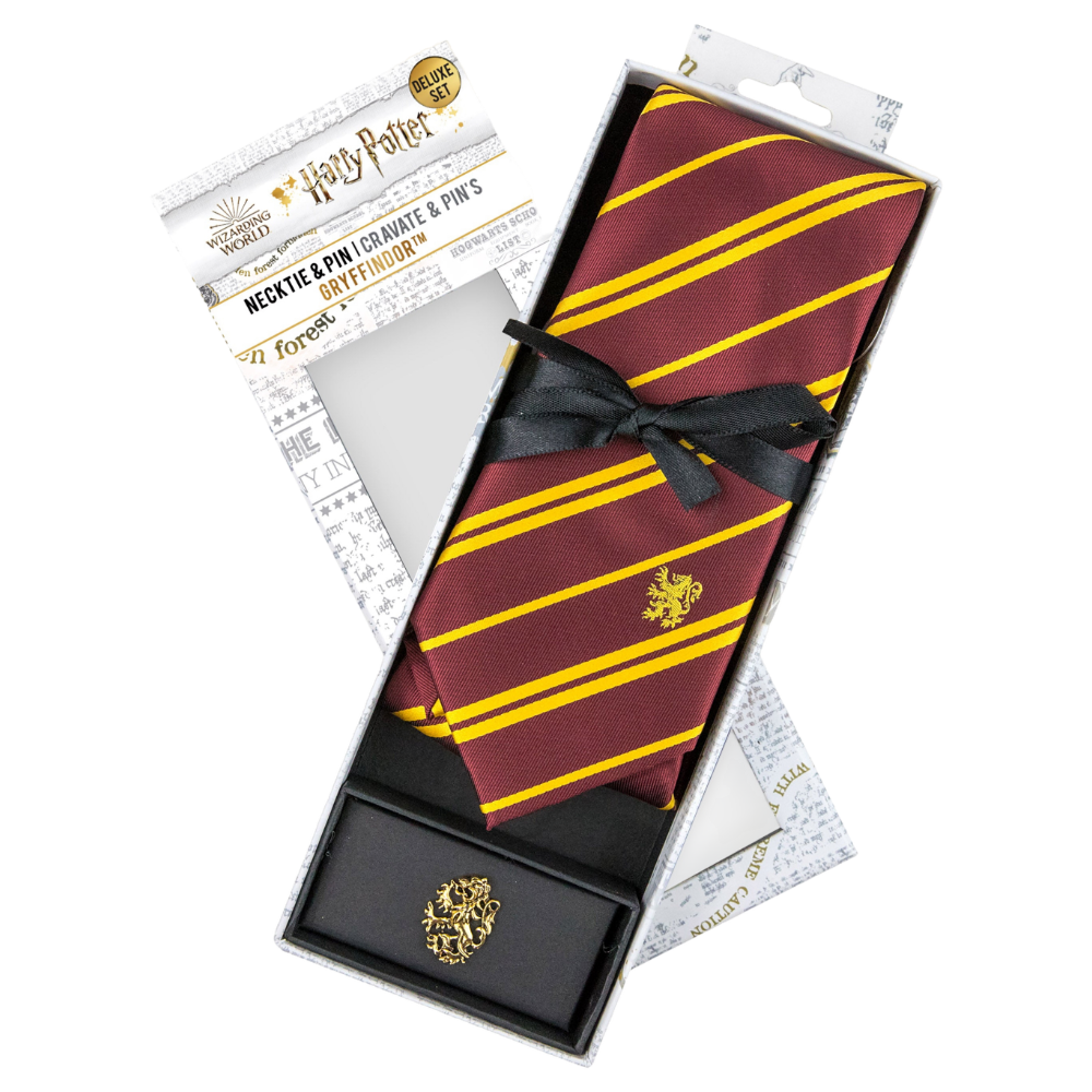 Die Krawatte ist ein unverzichtbares Element der Garderobe von Hexen und Zauberern. Ob als Teil deiner kompletten Uniform mit Umhang, unter deinem Gryffindor-Pullover oder sogar im Alltags-Outfit – die Deluxe-Krawatte wird alle um dich herum beeindrucken.