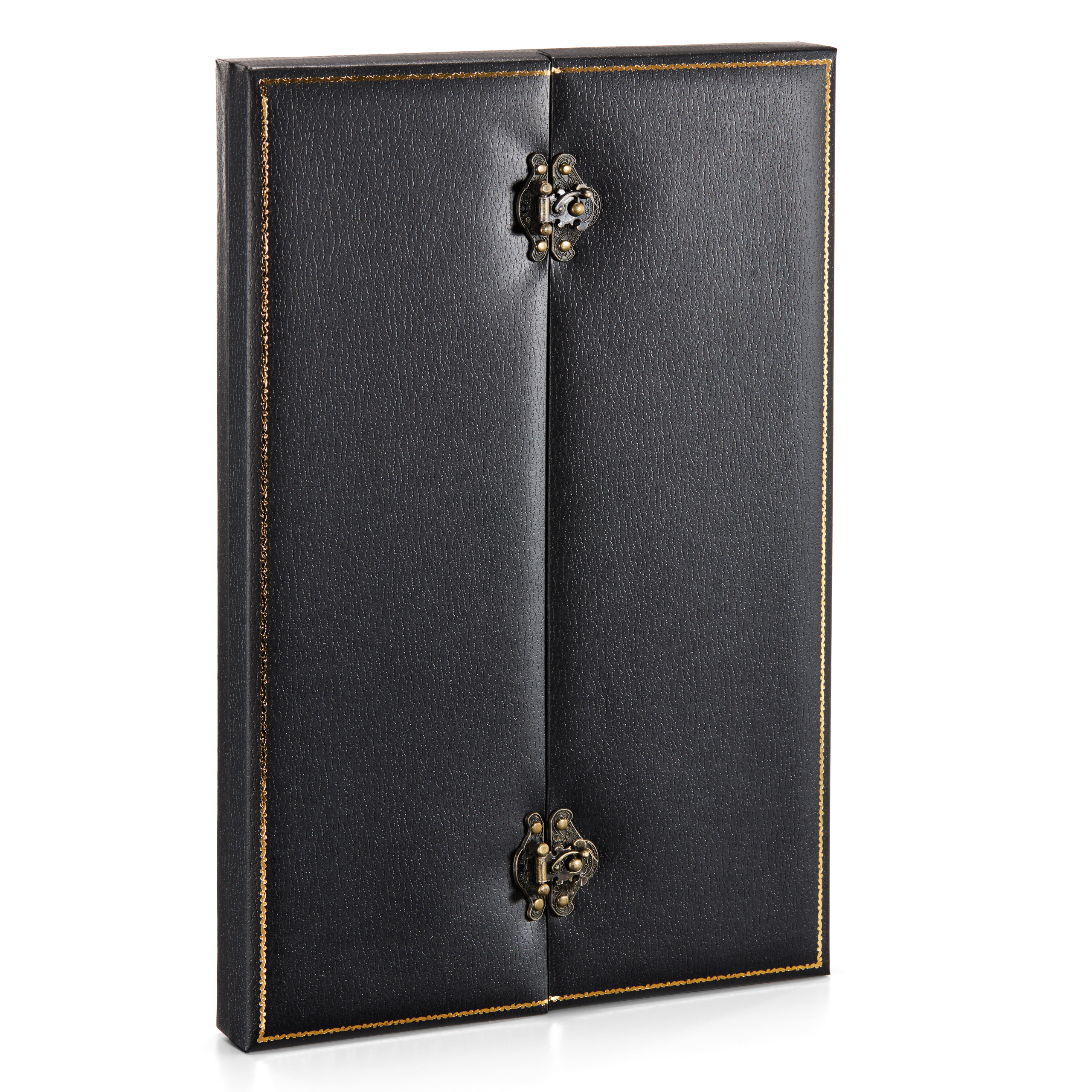 • Sammler-Displaybox aus Lederimitat, ca. 33 cm hoch, mit Metallschwenkverschlüssen und Velours-Auskleidung