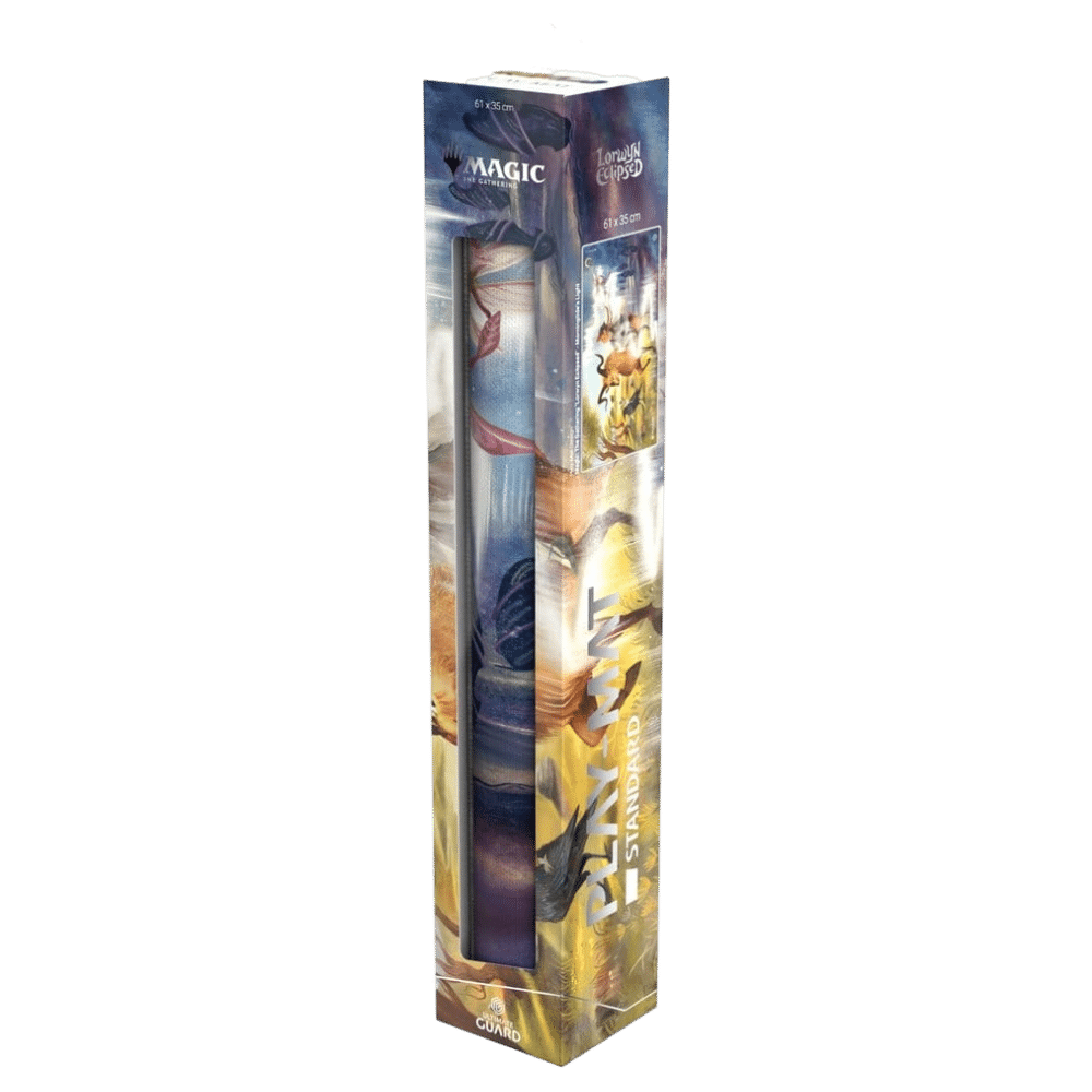 Ultimate Guards Play-Mat Standard mit offiziell lizenzierten Artworks aus dem Magic: The Gathering-Set "Lorwyn Eclipsed" ist eine hochwertige MTG-Playmat in der Grösse 61 x 35 cm, die für ein angenehmes und verbessertes Spielerlebnis sorgt. Karten, Hüllen und Zubehör werden beim Spielen zuverlässig vor Kratzern, Abnutzung und Schmutz geschützt. Die weich gepolsterte Spielmatte besteht aus 2 mm dickem Naturkautschuk, verfügt über unsere bewährte rutschfeste Textur auf der Rückseite und eine weiche, bedruckte Stoffoberfläche. Die genähten Ränder verhindern ein Ausfransen und garantieren eine lange Lebensdauer.