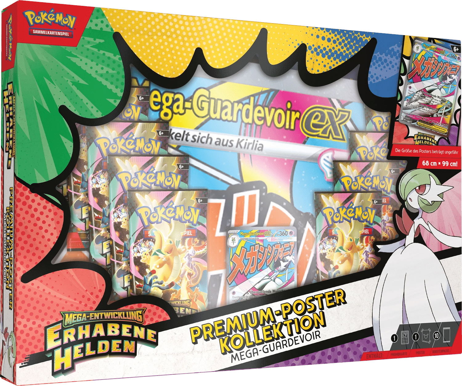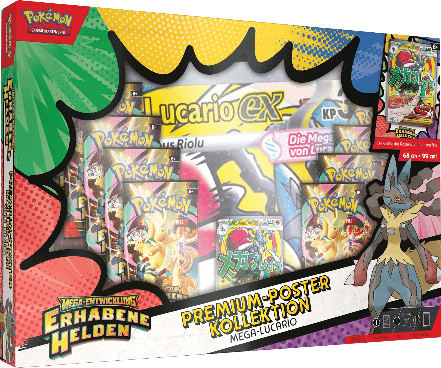 Inspiriert vom Videospiel Pokémon-Legenden: Z-A, heissen wir in Mega-Entwicklung – Erhabene Helden neue Charaktere und Schauplätze im Pokémon-Sammelkartenspiel willkommen. Trainer können darin Mega-Entwicklungs-Pokémon-ex – darunter Mega-Dragoran-ex – und Trainer-Pokémon entdecken. Die Spieler werden auch die beliebten Mega-Entwicklungs-Pokémon-ex und Trainer-Pokémon vorfinden, die mit neuen Illustrationen erscheinen.
